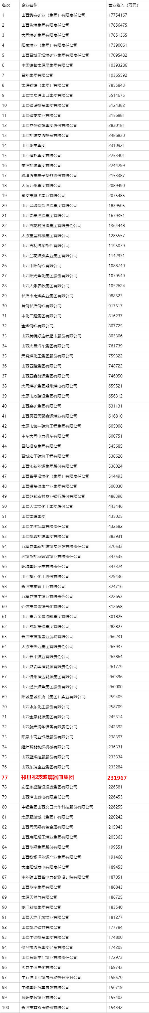 祁县祁玻玻璃器皿集团荣登山西省百强企业100强。