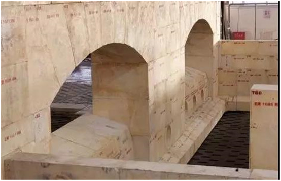 6.池壁绑砖要综合考虑窑炉已使用的年限、其它部位的耐火材料烧蚀情况、生产状况、格子体的堵塞情况等,判定窑炉可再使用的年限,合理选用绑砖材质。