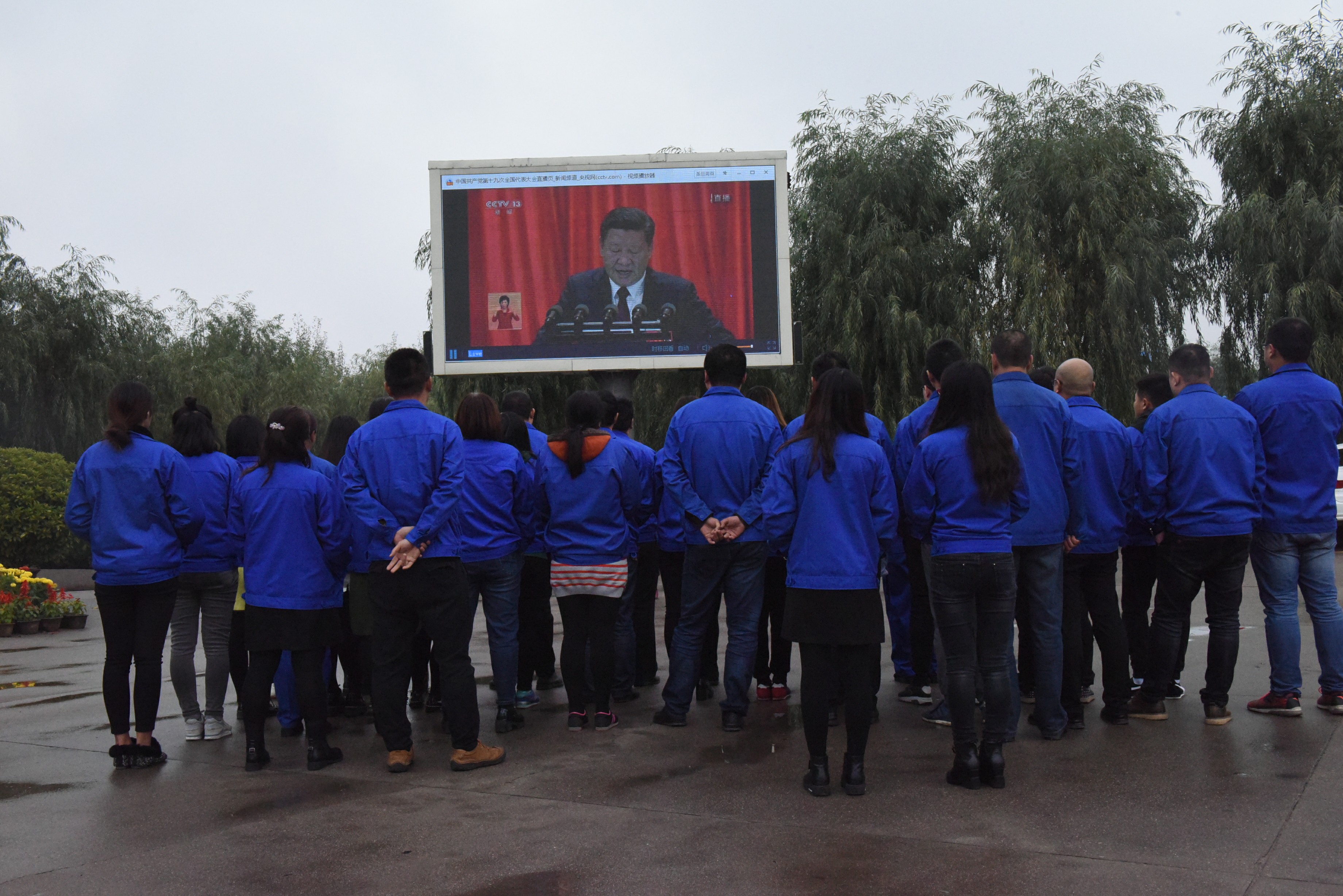 安博首页_安博(中国)玻璃公司党委组织全体人员在公司广场通过LED大屏集中收看了党的十九大开幕会。
