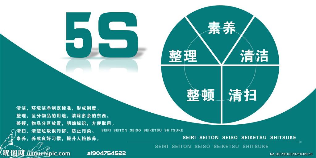 5S就是整理、整顿、清所、清洁、素养五个项目,因日语的罗马拼音均以“S”开头,简称为5S。5S活动起源于日本,并在日本企业中广泛推行,它相当于我国企业开展的文明生产活动。“5S”活动的对象是现场的“环境”,它对生产现场 环境全局进行综合考虑,并制订切实可行的计划与措施,从而达到规范化管理。