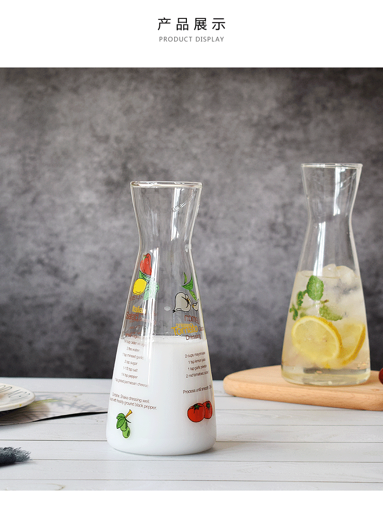 贴花冷水壶,玻璃贴花水壶,玻璃水壶定制,贴花水壶订购,水壶工厂,