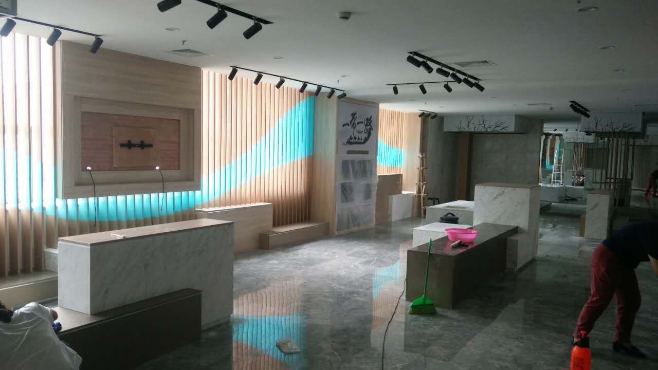 公司展厅装修于5月开始,经过两个多月的紧张施工,目前已经进入最后的完善阶段,装修完成的祁玻集团展厅将成为祁县玻璃器皿对外展示一道亮丽风景线,展示祁县玻璃器皿及相关产品的综合展厅。